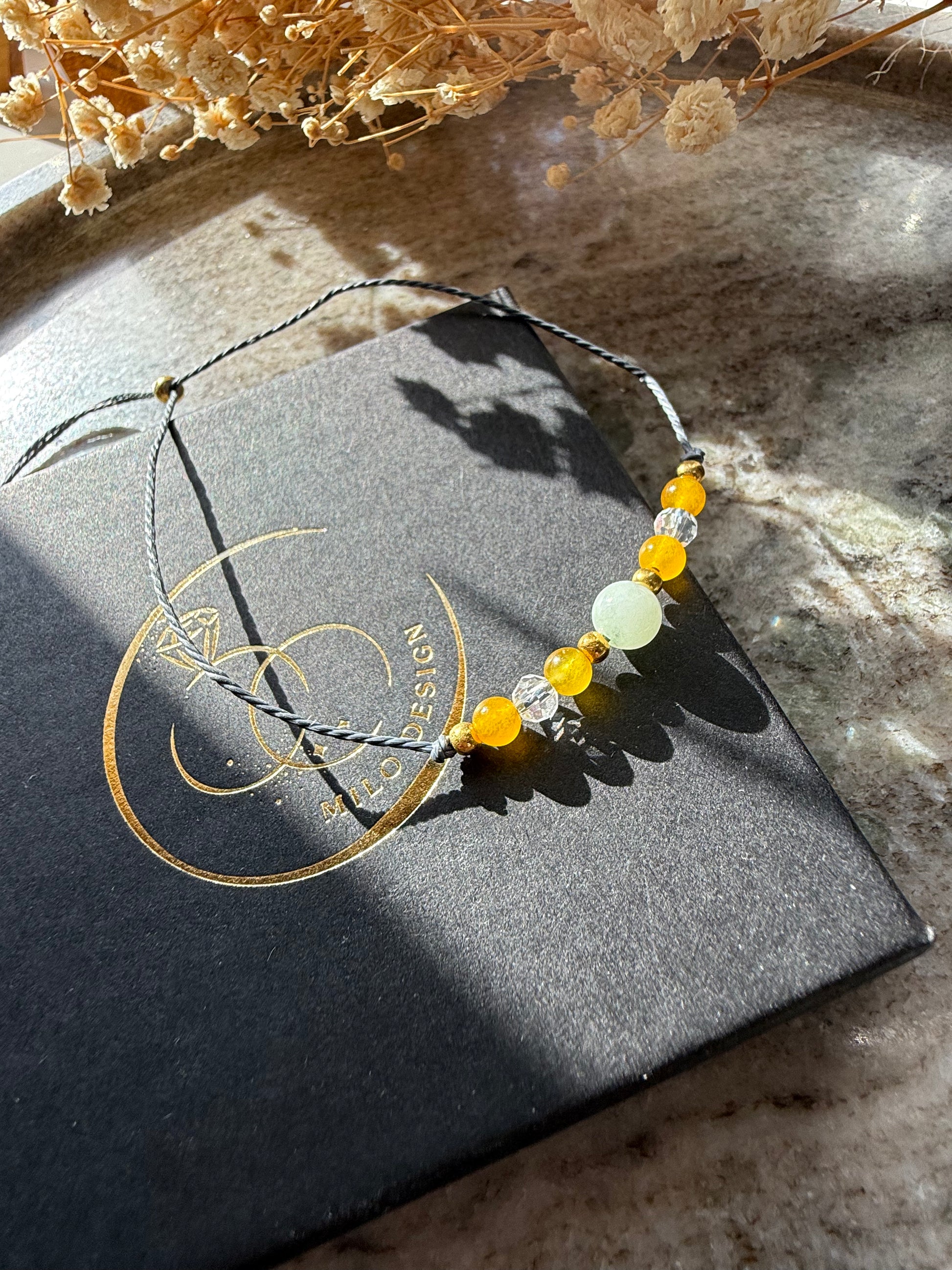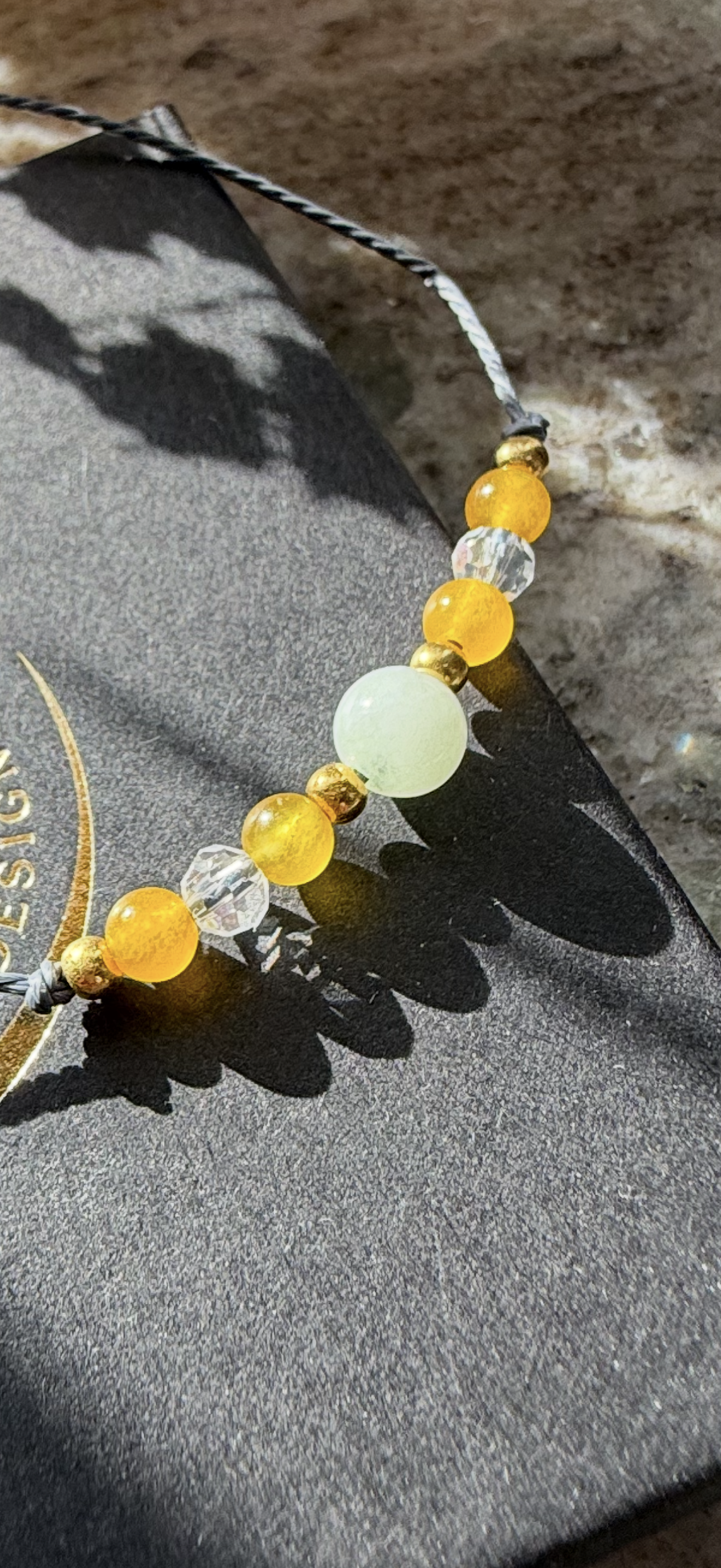 💓Bransoletka stworzona z myślą o tych, którzy pragną wprowadzić do swojego życia więcej radości, pozytywnej energii i wewnętrznego światła. Ręcznie wykonana z naturalnych kamieni półszlachetnych i wykończona eleganckimi, złotymi akcentami ze stali chirurgicznej, łączy w sobie delikatność i siłę – doskonała do noszenia na co dzień jako osobisty talizman obfitości i dobrego nastroju.