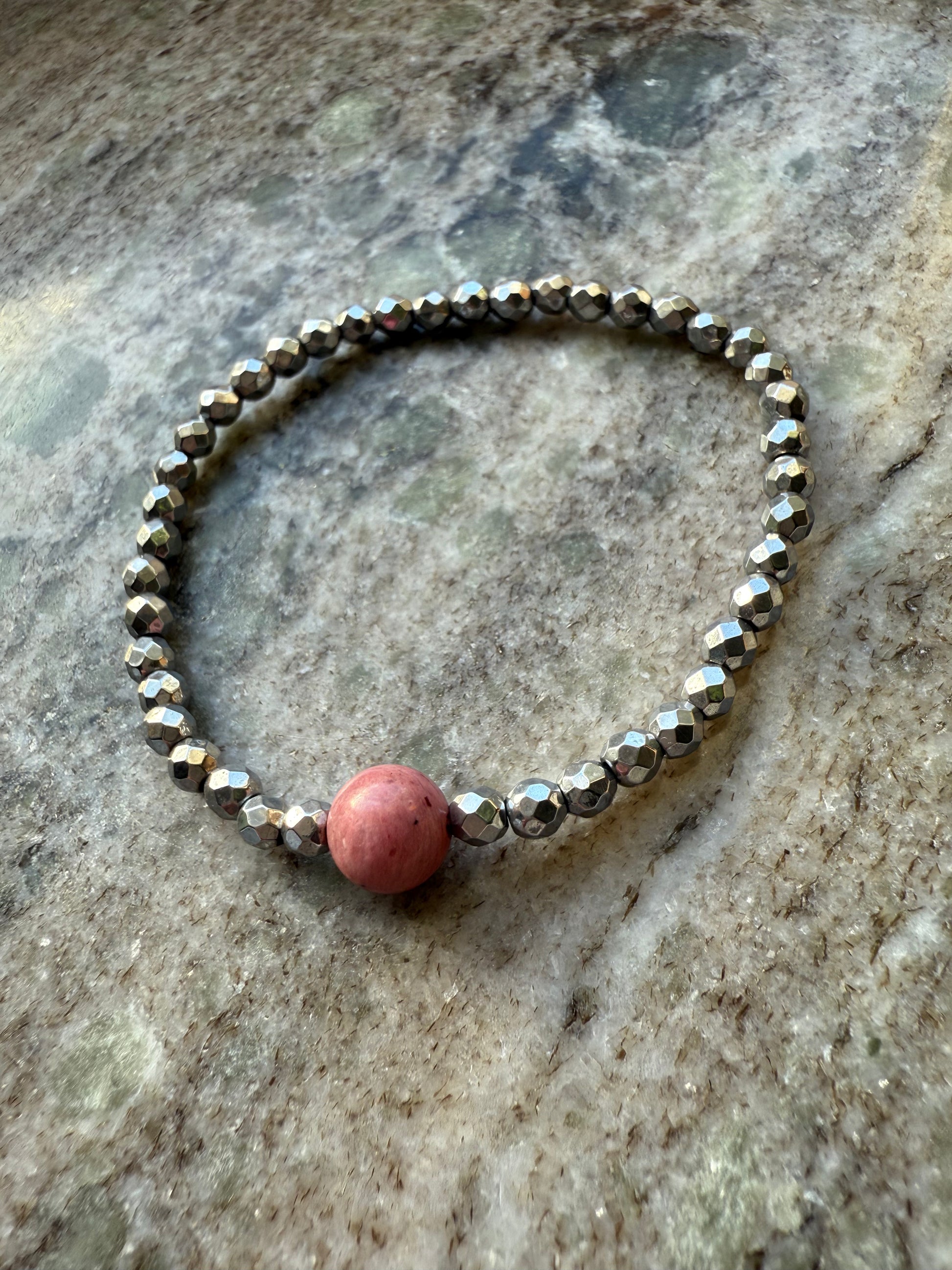 ✅ Materiał: Srebrny hematyt (kulki), rodonit (kulka)
