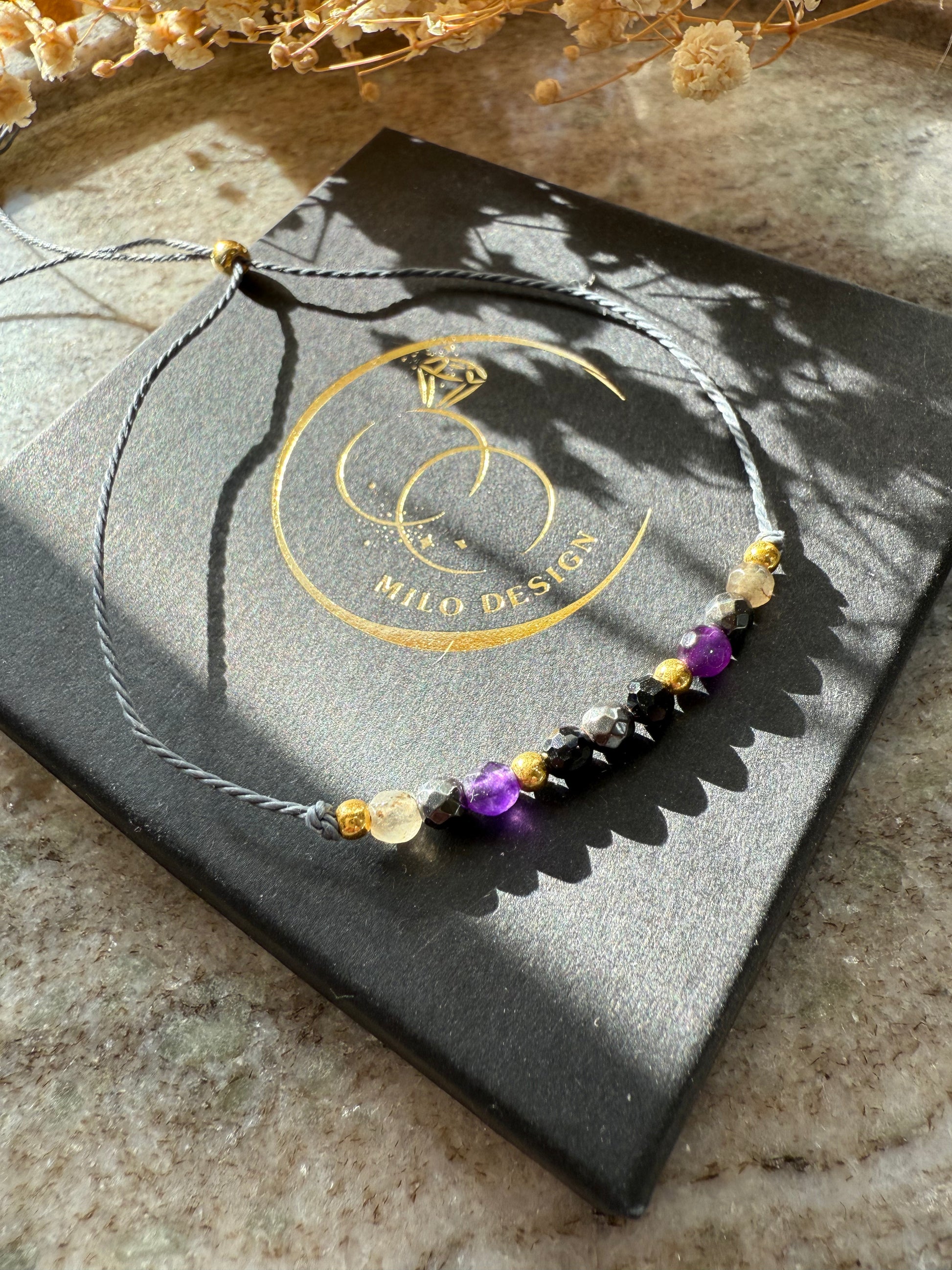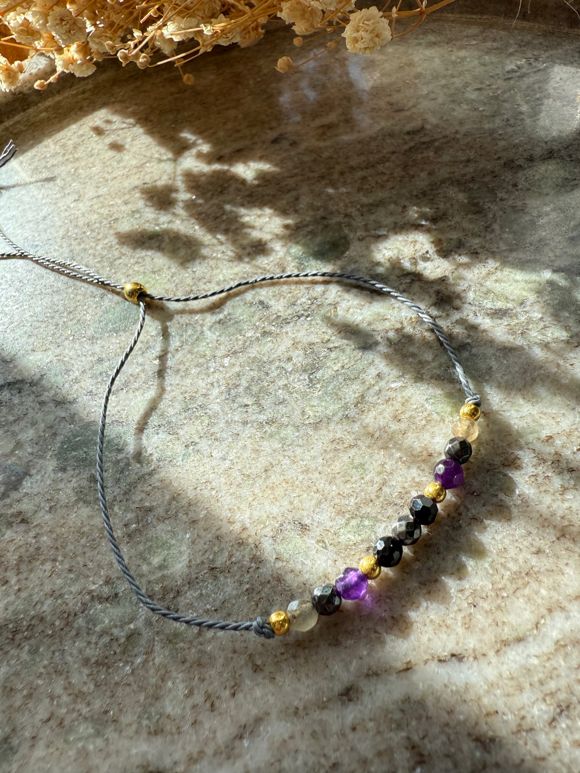 💓Bransoletka na sznurku z labradorytem, ametystem, czarnym turmalinem i hematytem – Intuicja, ochrona i wewnętrzna moc