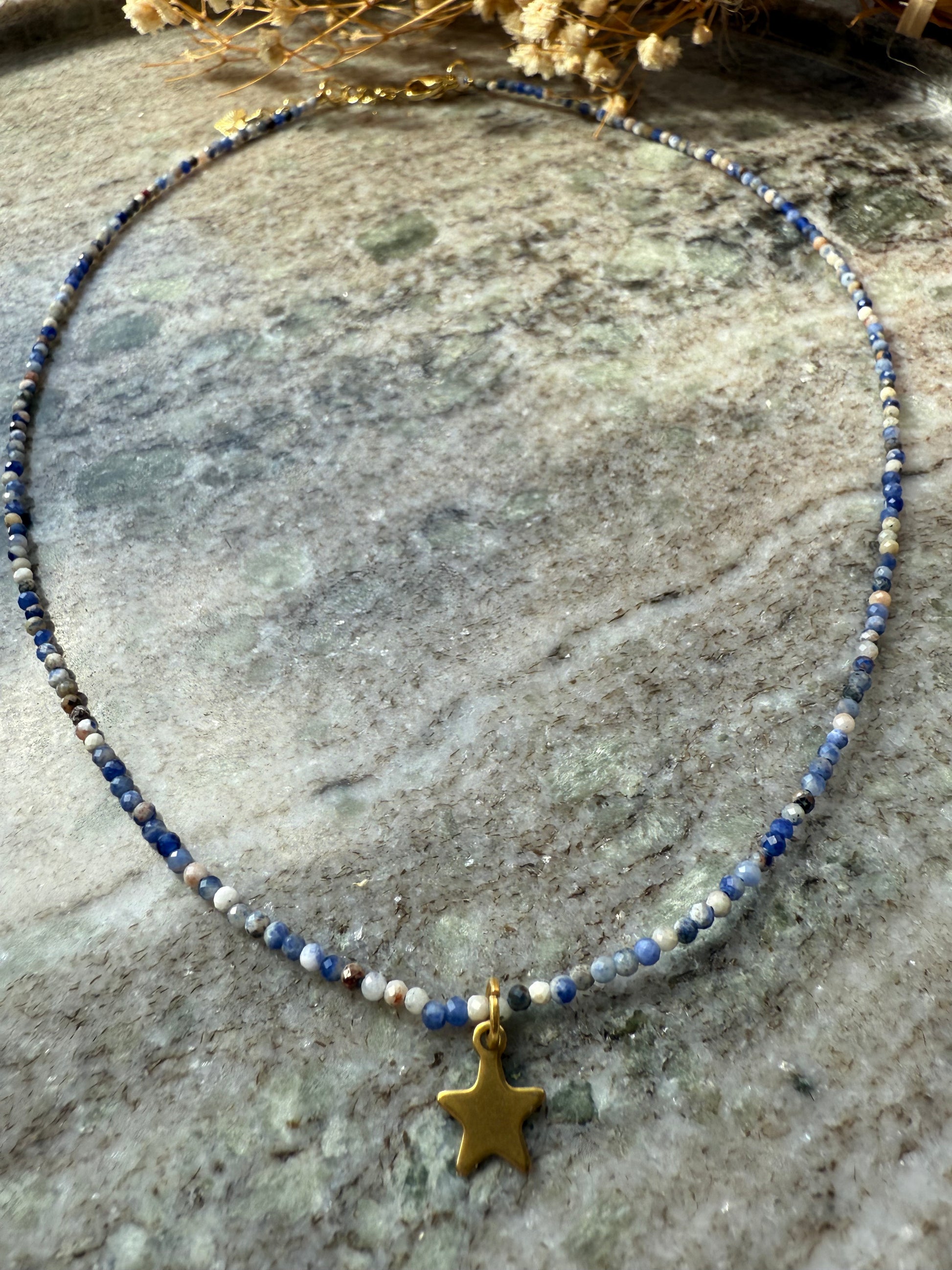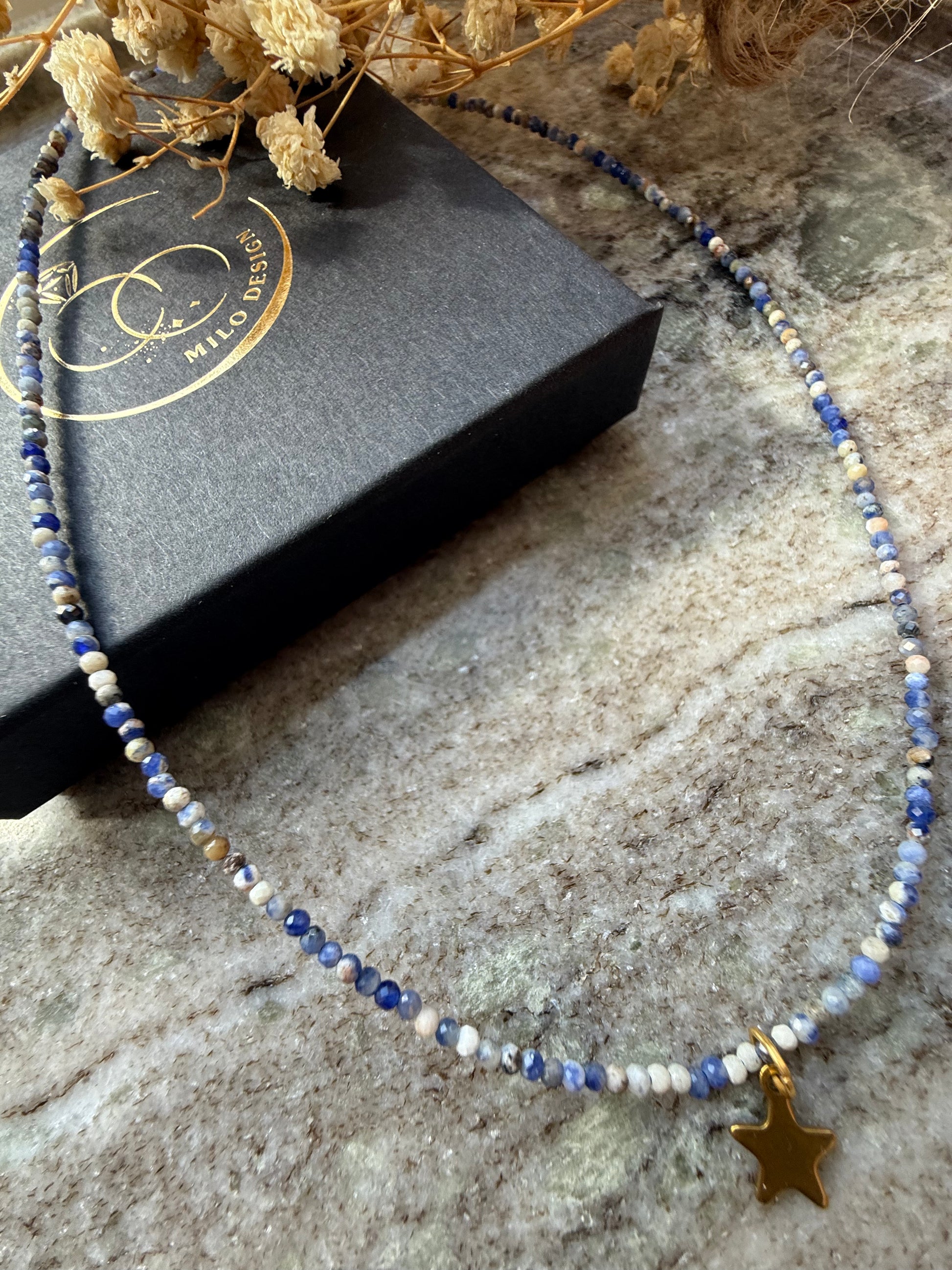 💓Naszyjnik z sodalitu z zawieszką w kształcie złotej gwiazdki – Harmonia, intuicja i subtelny blask