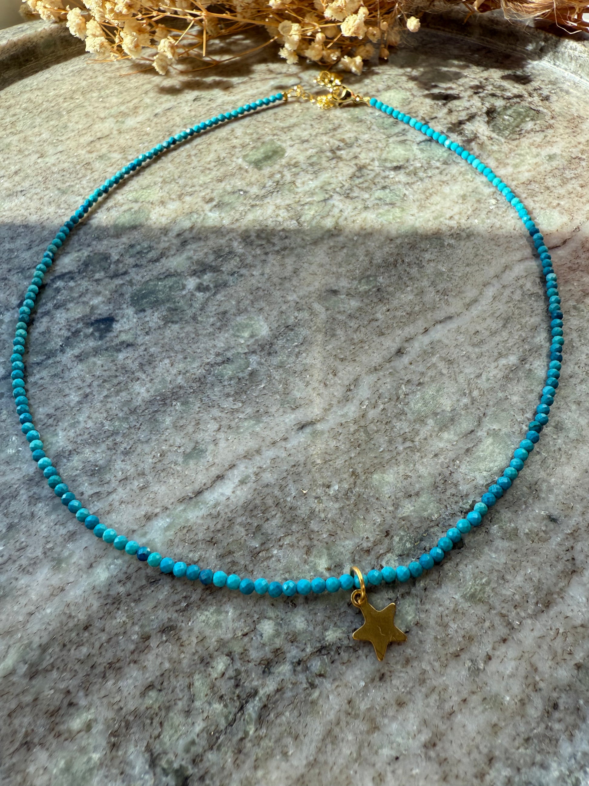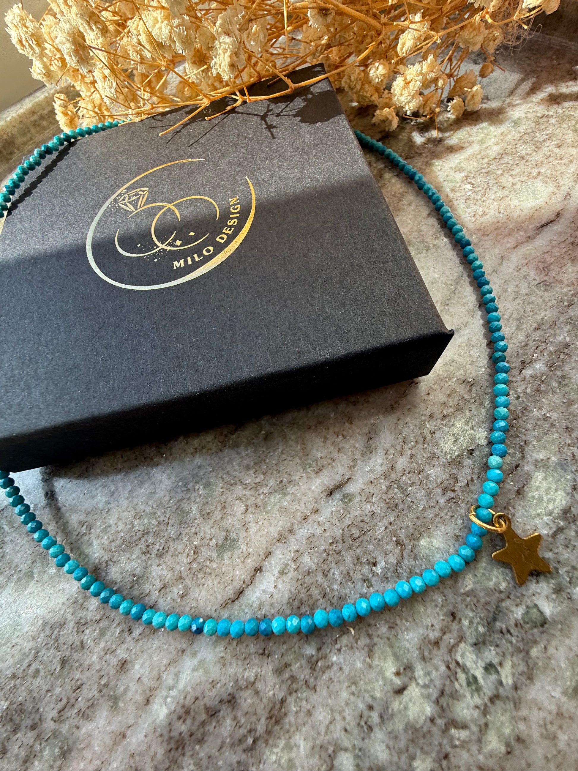 💓Naszyjnik z turkusu z zawieszką w kształcie złotej gwiazdki – Ochrona, odwaga i subtelny blask