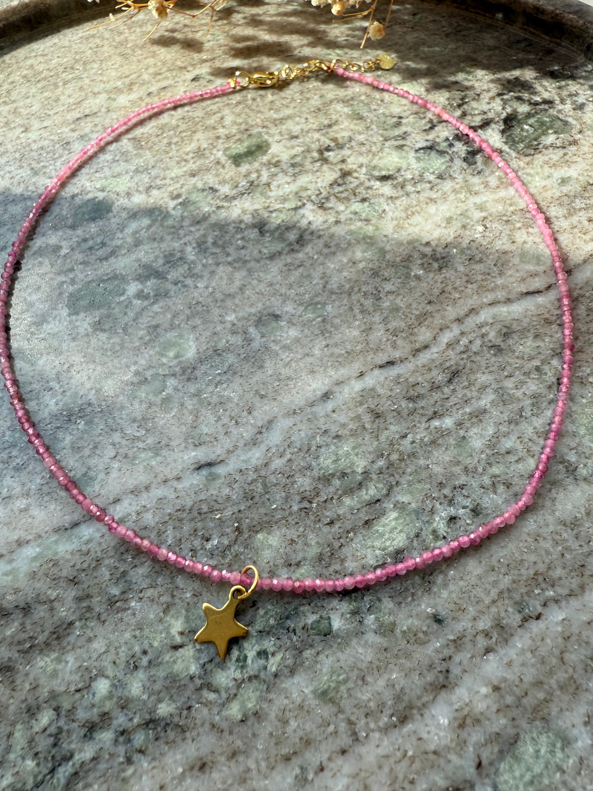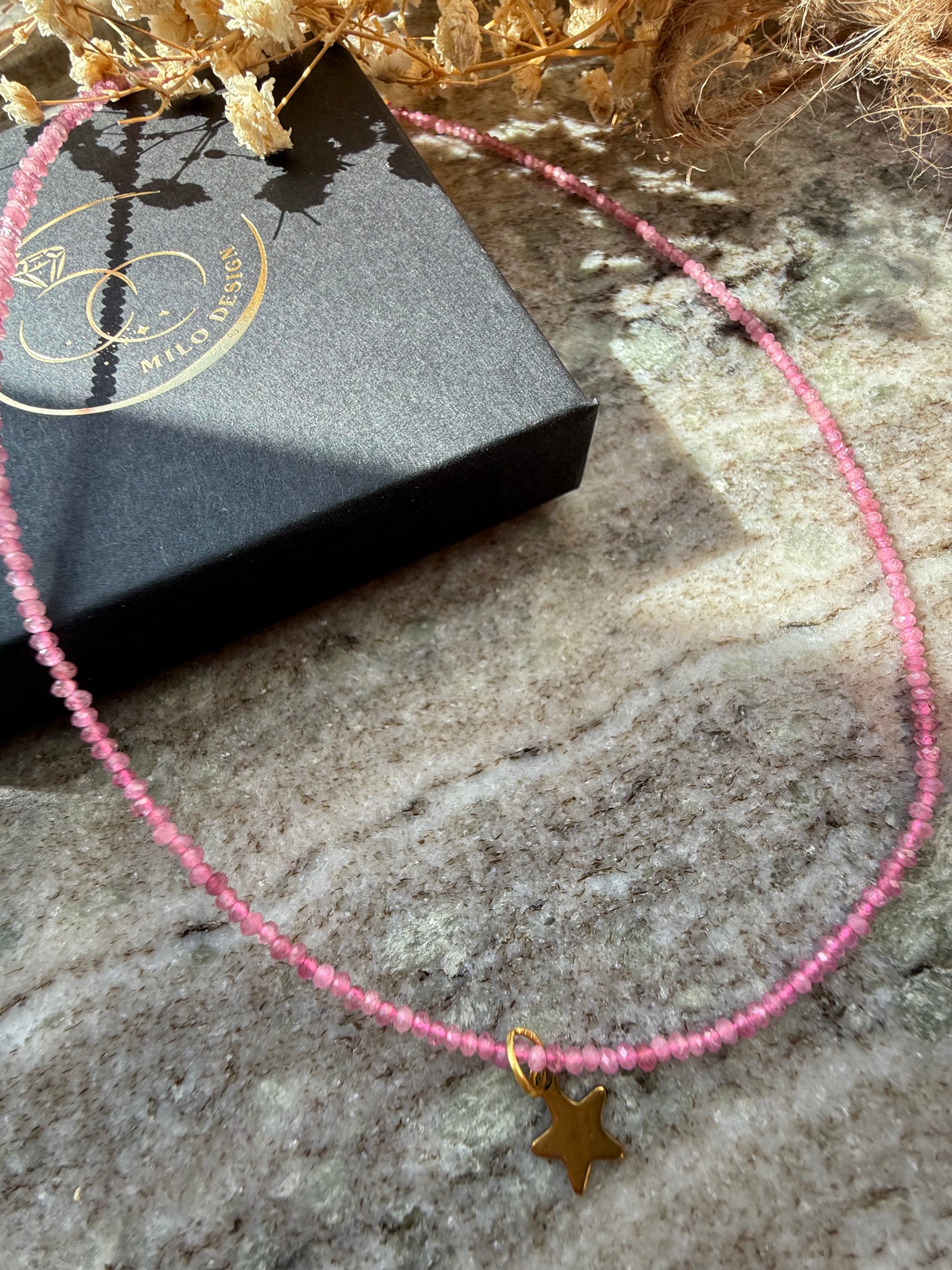 💓Naszyjnik z różowego turmalinu z zawieszką w kształcie złotej gwiazdki – Miłość, harmonia i subtelny blask