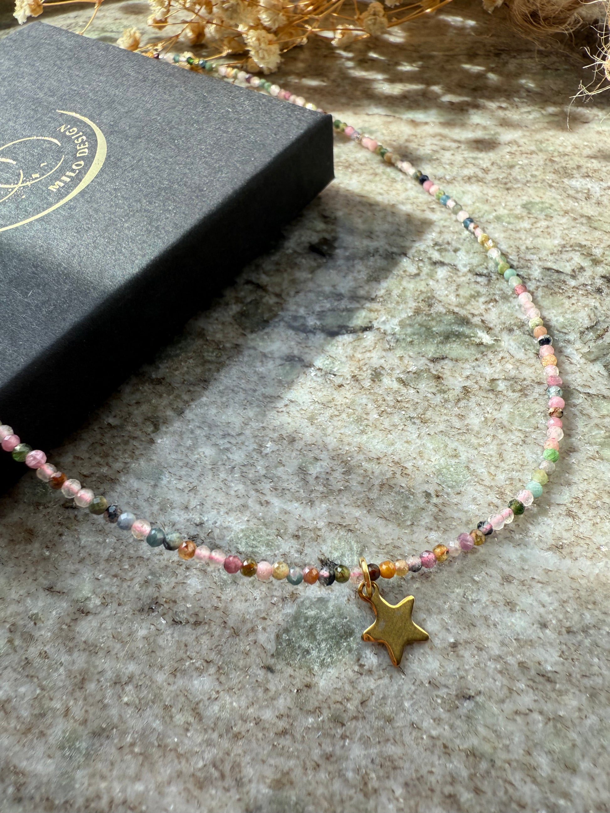 💓Naszyjnik z Turmalinu 2–3 mm z zawieszką w kształcie gwiazdki
