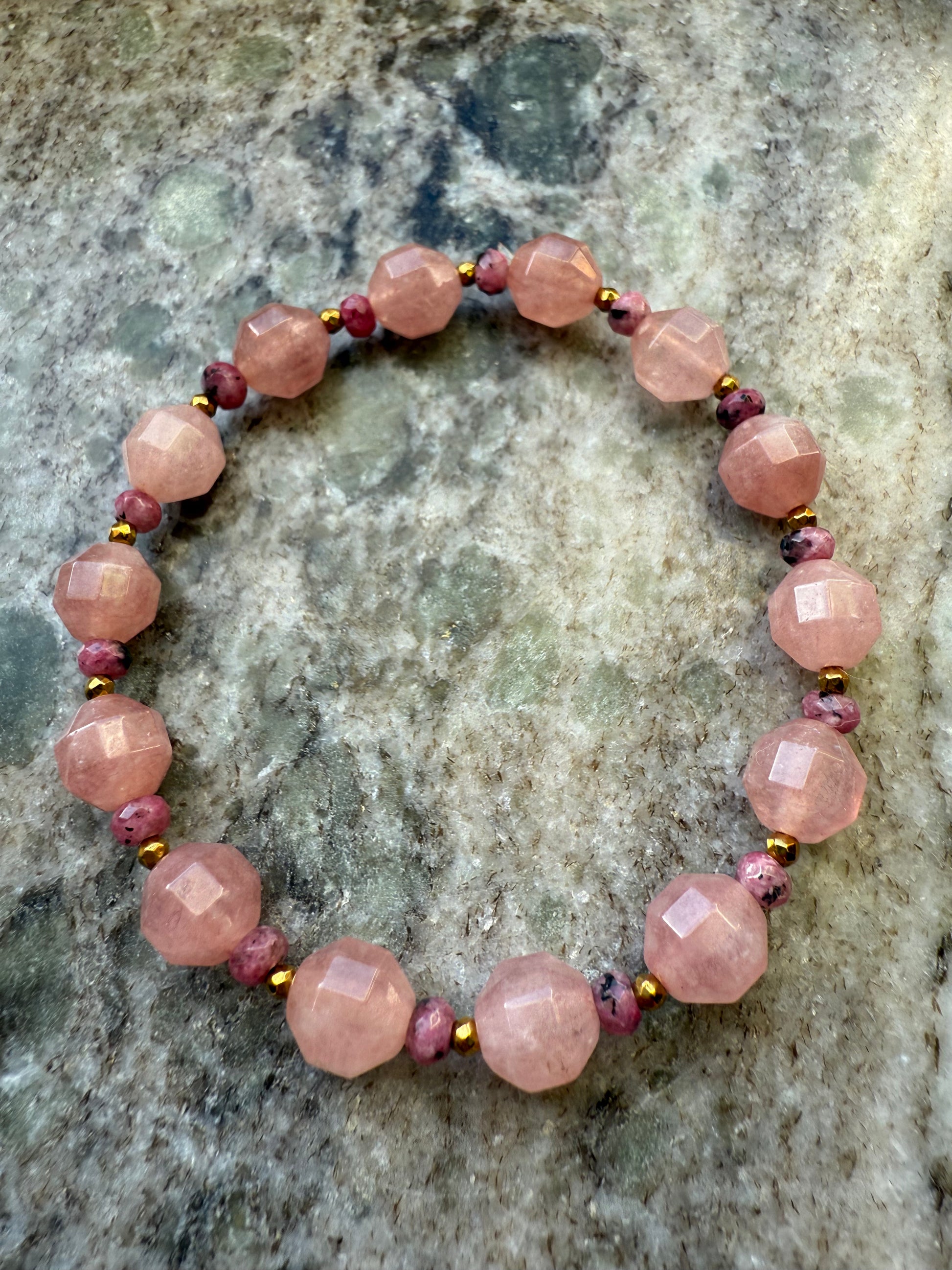 Bransoletka z agatu i złotego hematytu z malutkimi rondelkami