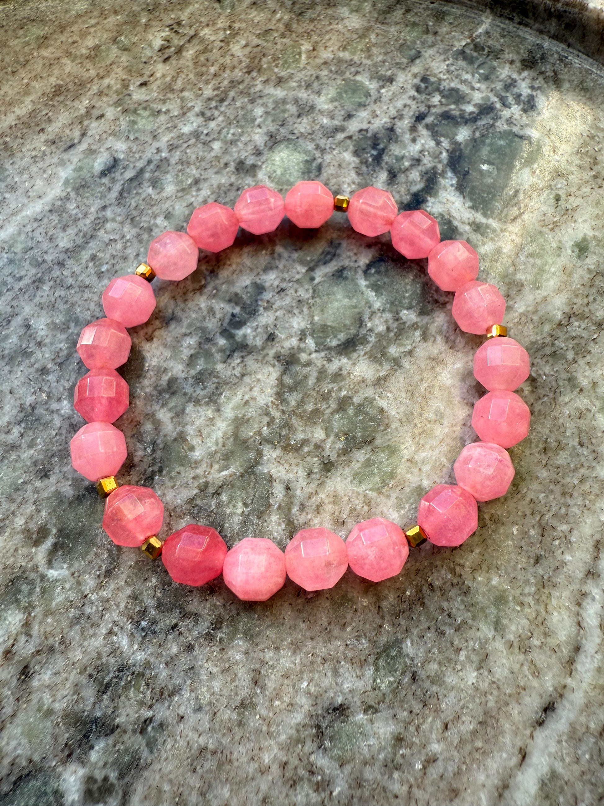 Bransoletka „Golden Rose” – Różowy Agat z Hematytem